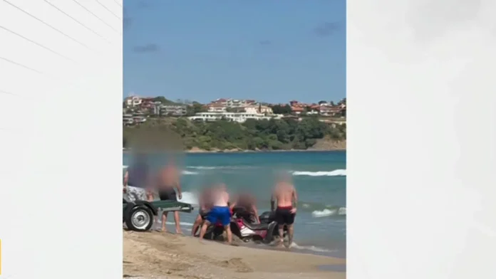 Необичайна гледка се разигра на плажа на къмпинг „Смокиня“, където АТВ заседна в пясъка по време на акция за изваждане на джет.