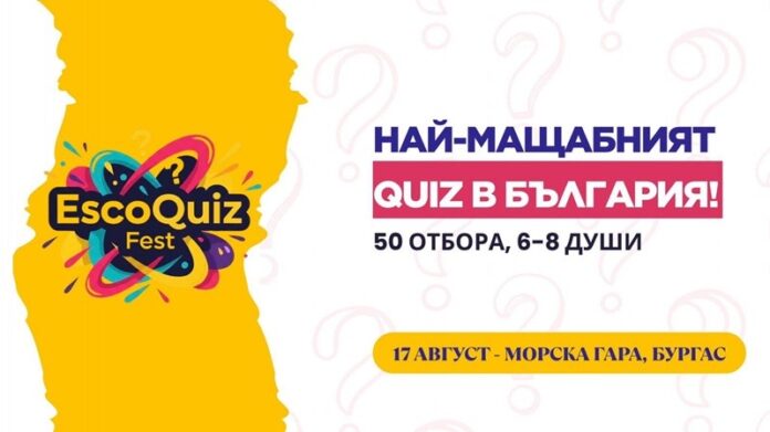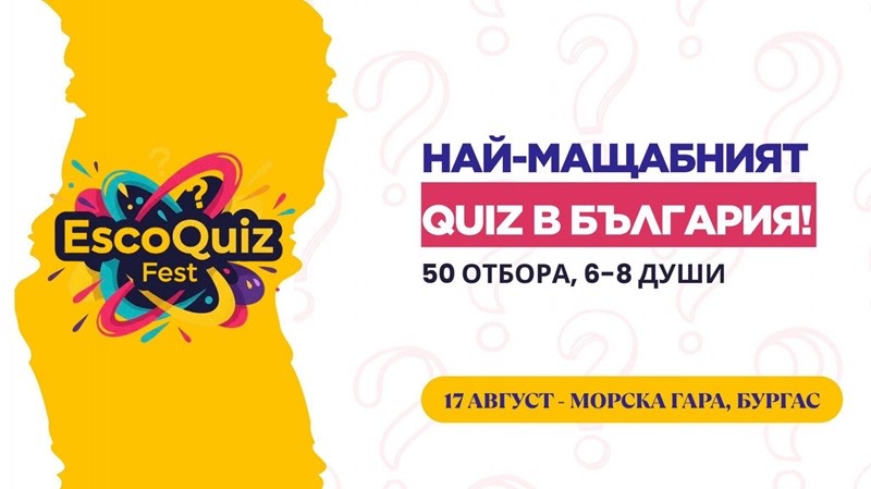 На 17 август Бургас ще бъде домакин на първото по рода си куиз събитие под открито небе в България – ESCOQUIZ FEST 2025, което ще се проведе от 20:00 ч. на Морска гара. Събитието е организирано със съдействието на Община Бургас и обещава да превърне знанието в празник, а интелектът – в звезда на вечерта.