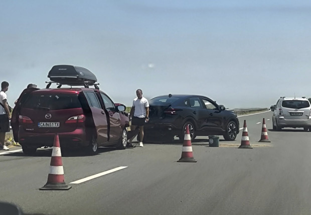 Пътният инцидент е възникнал при километър 296 – в близост до мястото, където преди дни е имало пожар. По първоначална информация няма пострадали, а катастрофата се обработва по административен ред.